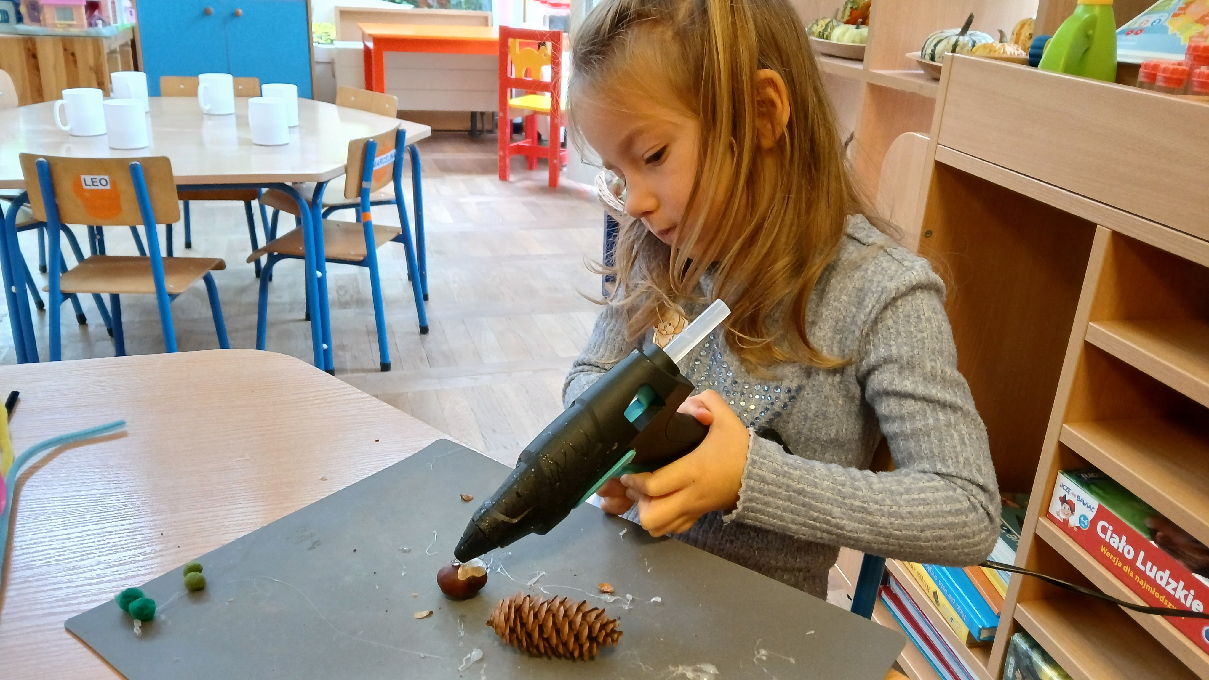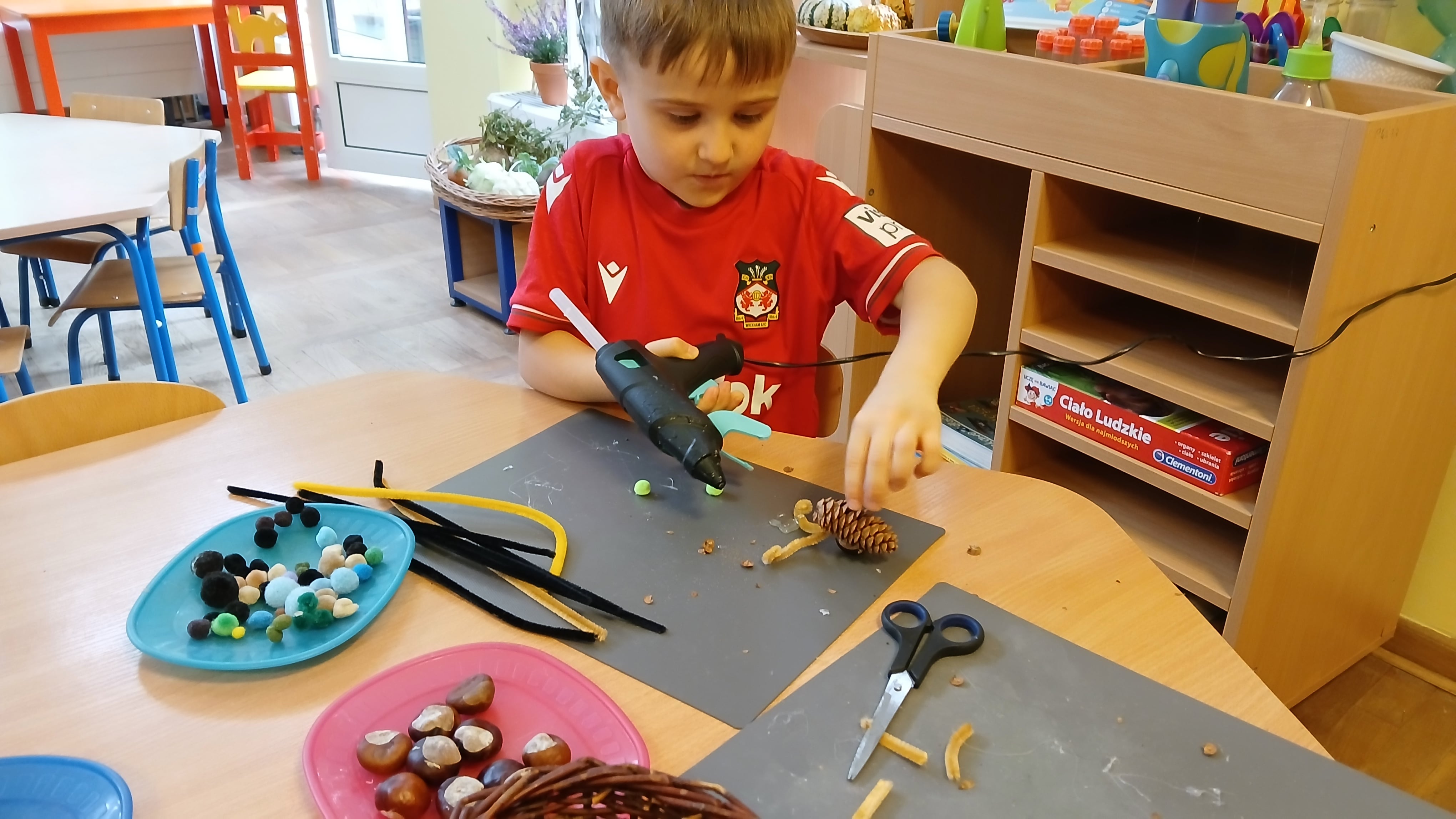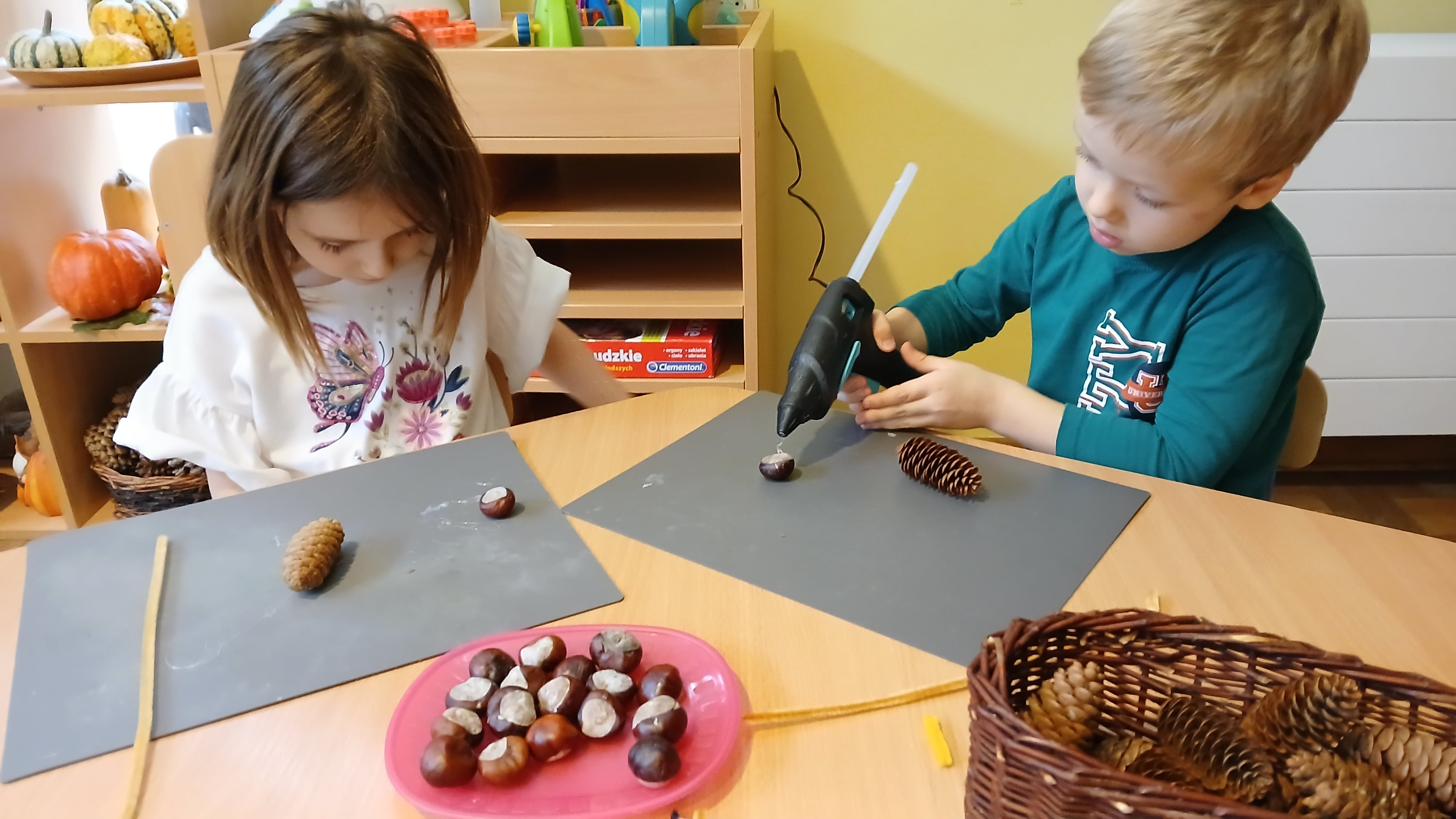 Z jesiennych materiałów przyrodniczych można stworzyć wiele kreatywnych prac plastycznych, które wspierają rozwój motoryki małej u naszych Przedszkolaków.