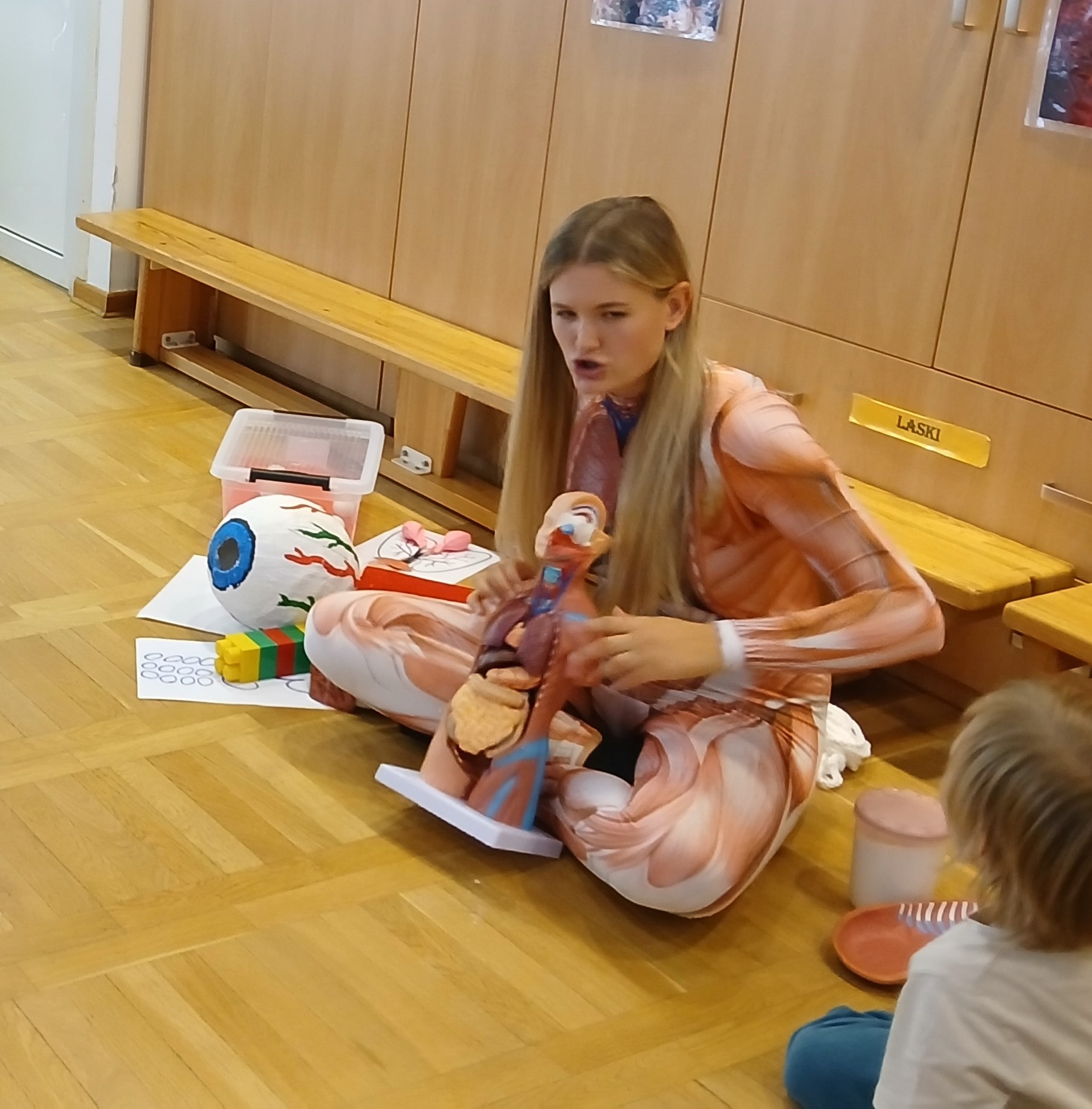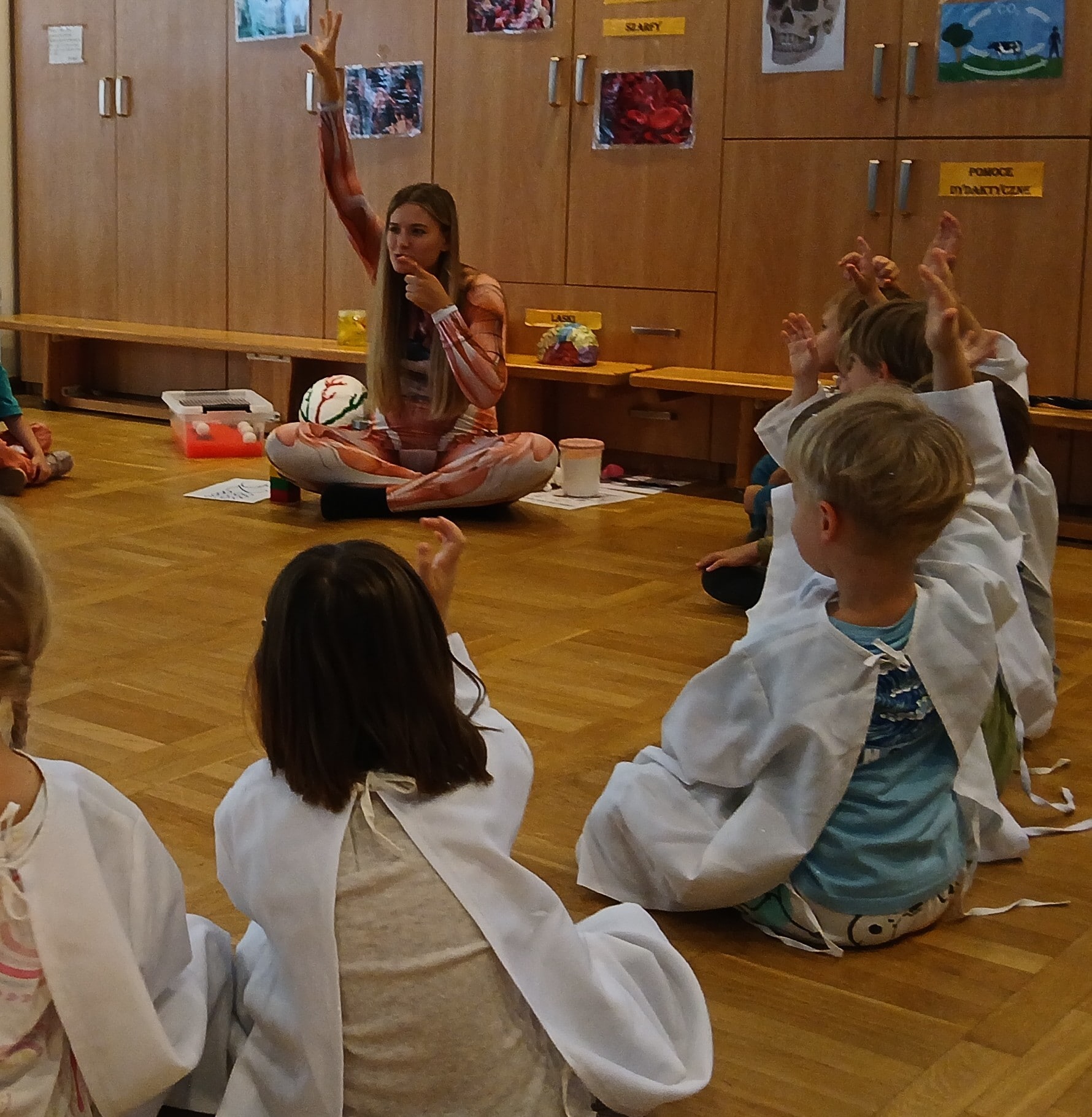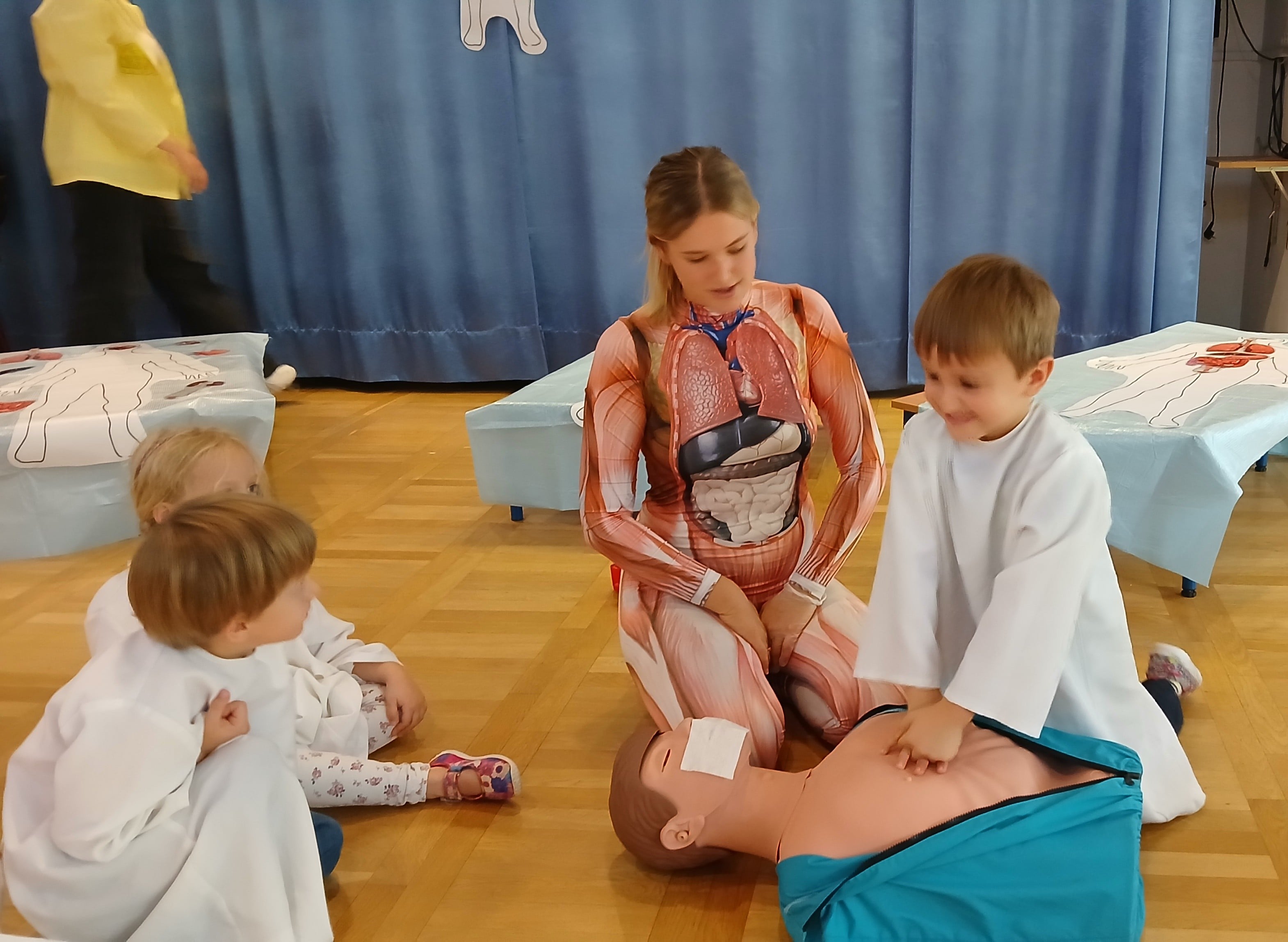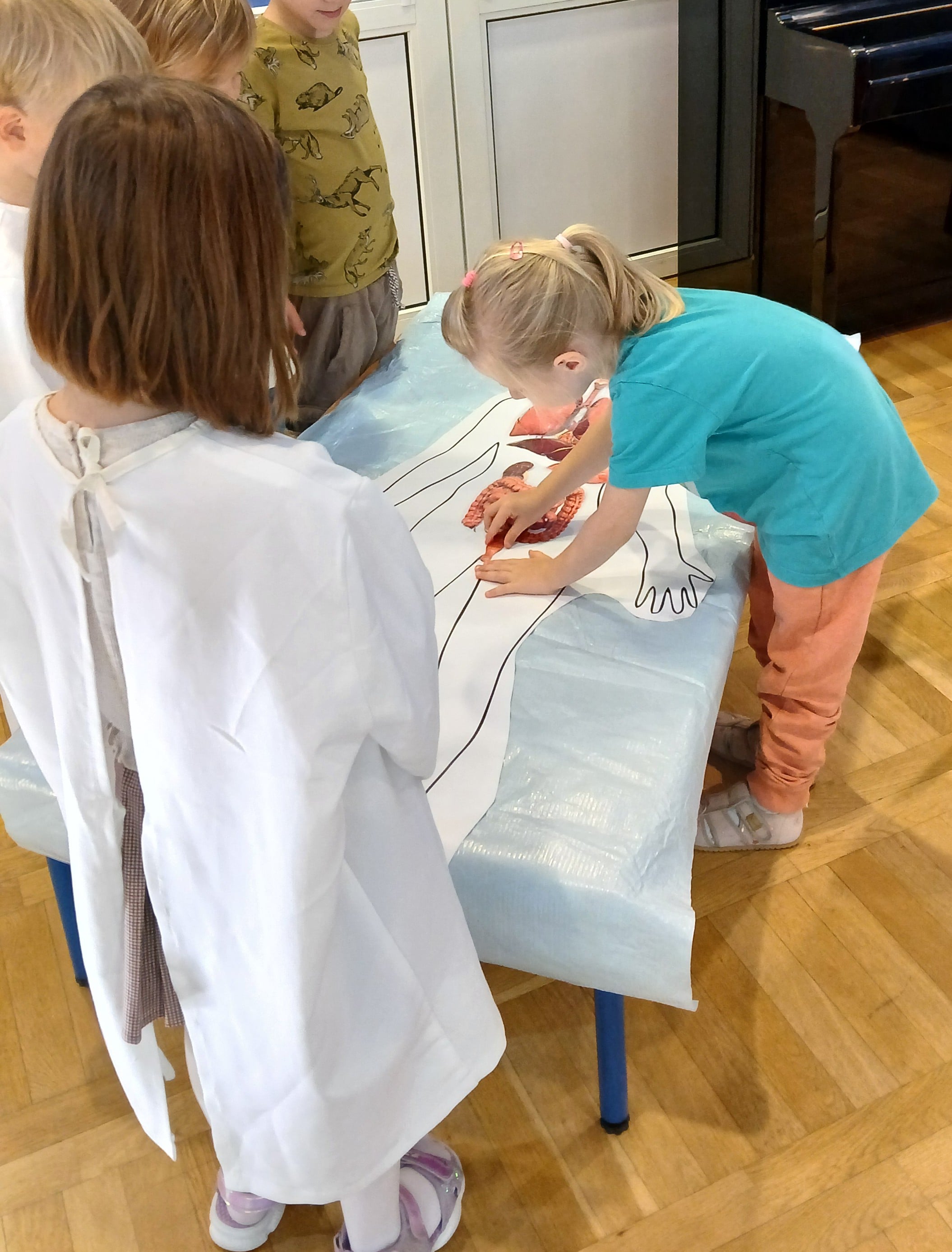 Dzieci wzięły udział w warsztatach medycznych. Miały mozliwość poznać tajniki medycyny poprzez zabawę. Przedszkolaki uczyły się podstaw pierwszej pomocy oraz budowy ludzkiego ciała.