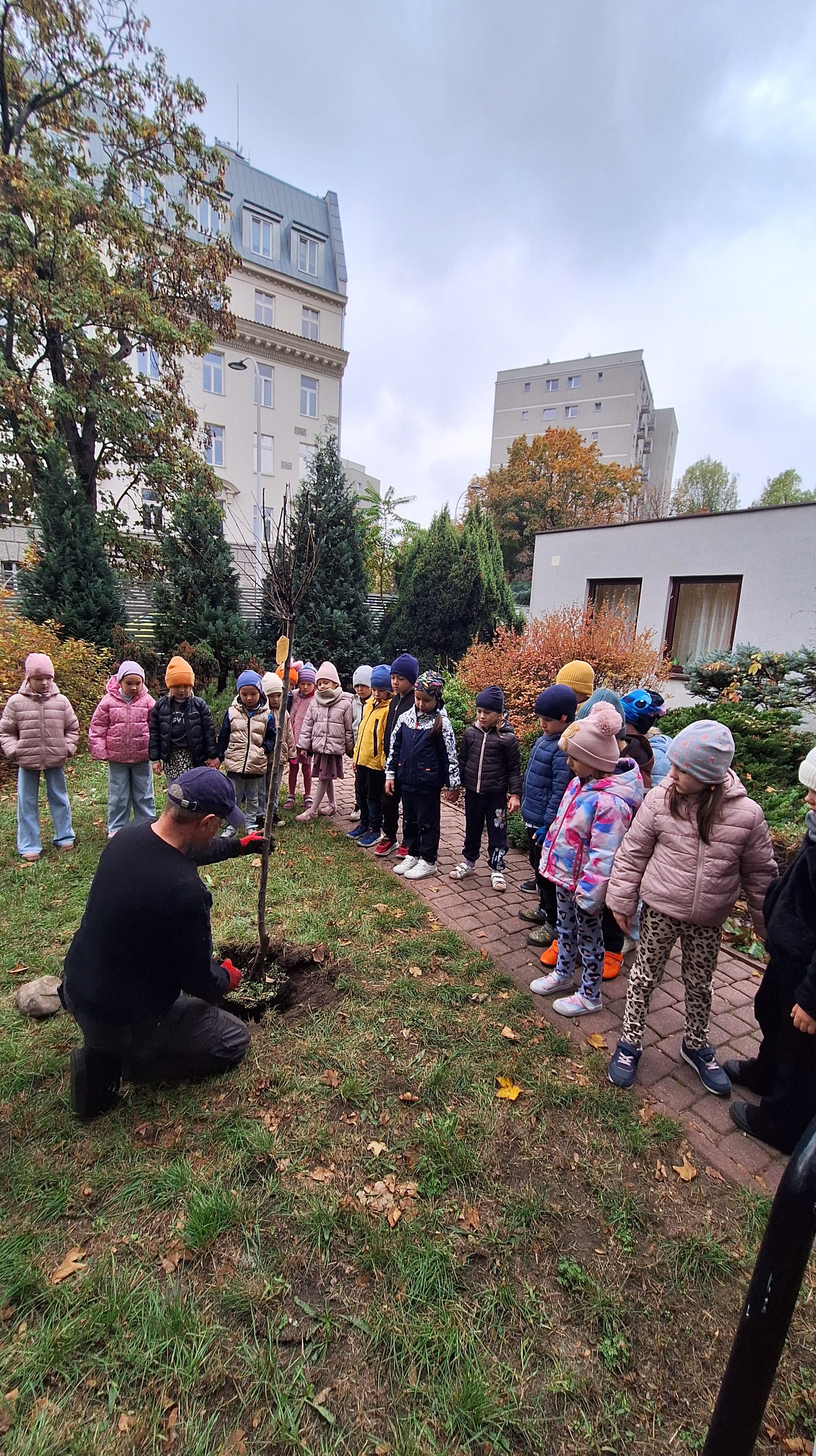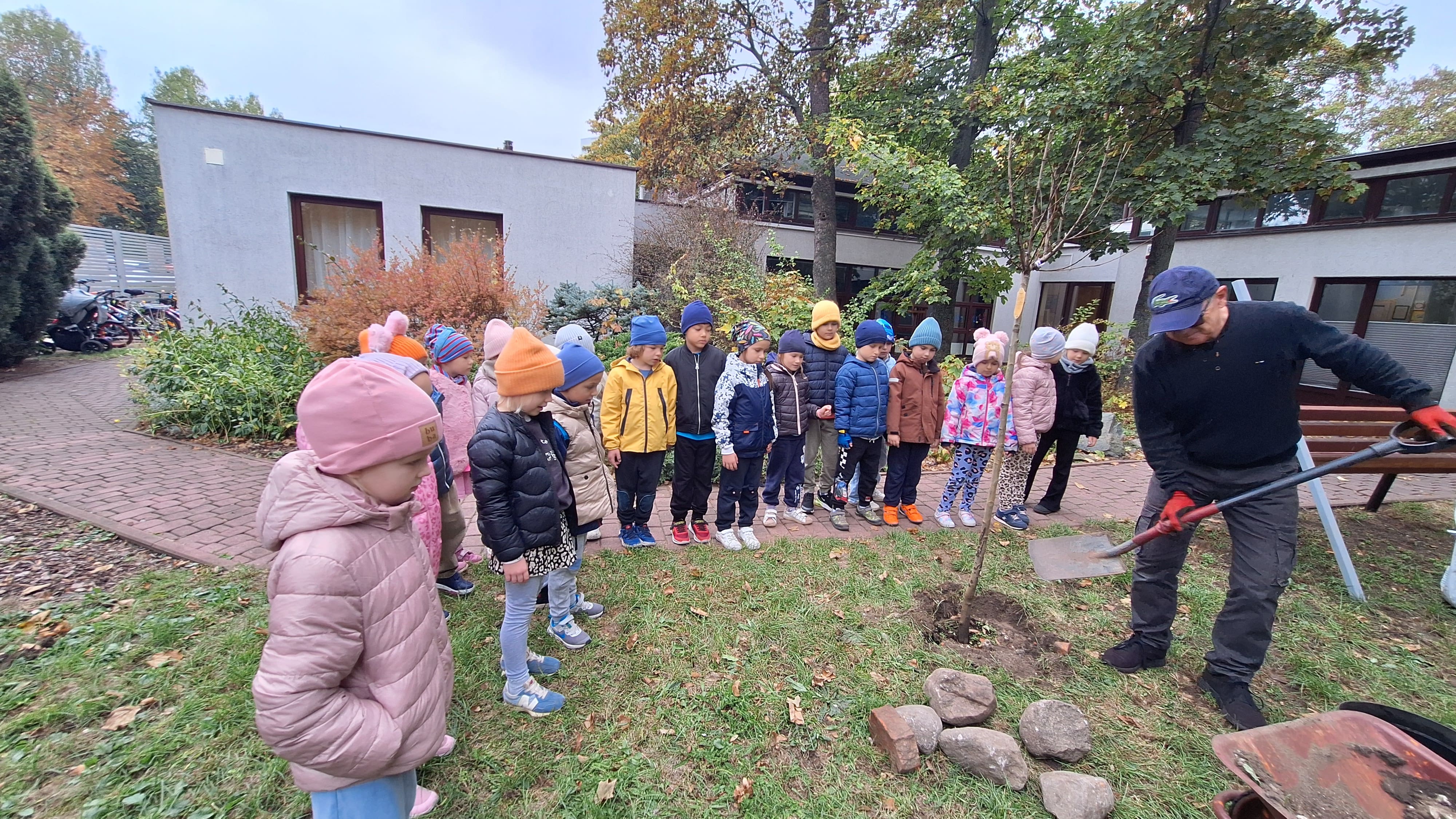 Grupa Bulinki w nagrodę za uczestnictwo w Sportowym Dniu Przedszkolaka otrzymała Migdałowe drzewo. Posadzili je przy pomocy niezastąpionego Pana Adama, który dzielił się z dziećmi swoją wiedzą z zakresu ogrodnictwa.