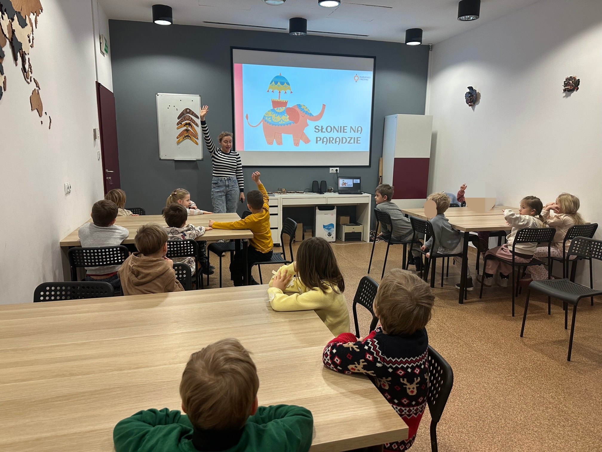 Dzieci z grupy „Misie” odwiedziły pobliskie Muzeum Azji i Pacyfiku, by wziąć udział w warsztatach „Słonie na paradzie”. Nasze przedszkolaki poznały tajemnice tych mądrych i dostojnych zwierząt, a także dowiedziały się, dlaczego w Azji darzy się je tak dużym szacunkiem.