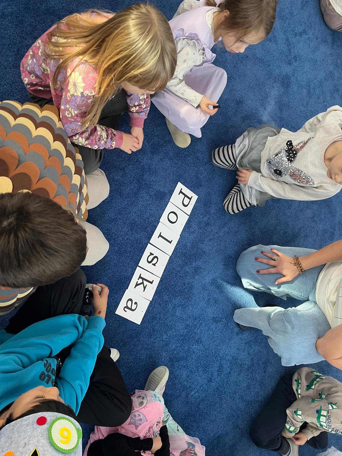 "O powstaniu państwa polskiego". Dzieci zapoznały się z legendą pt. Lech, Czech i Rus. Poznały symbole narodowe, jak godło, flaga i hymn.